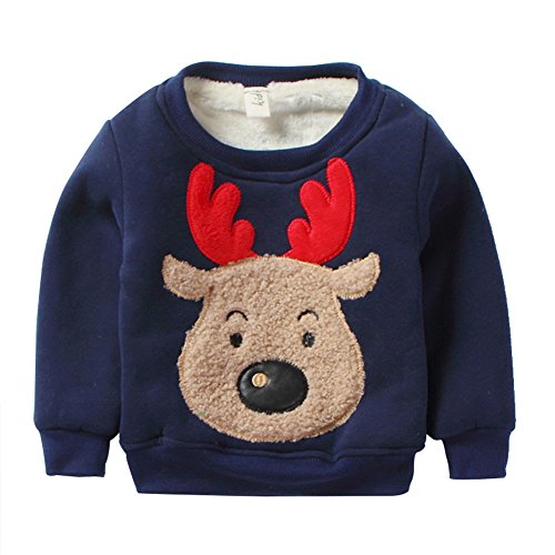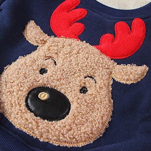 PANCY 子供服 秋冬 長袖 トレーナー 裏起毛 丸い襟 男の子 女の子 可愛い トナカイ アップリケ(100cm,ネイビー)
