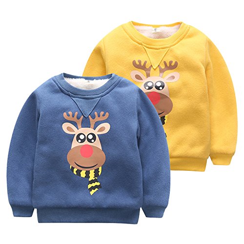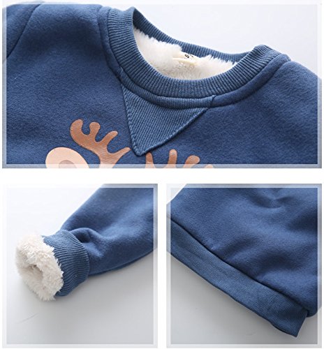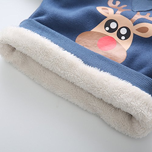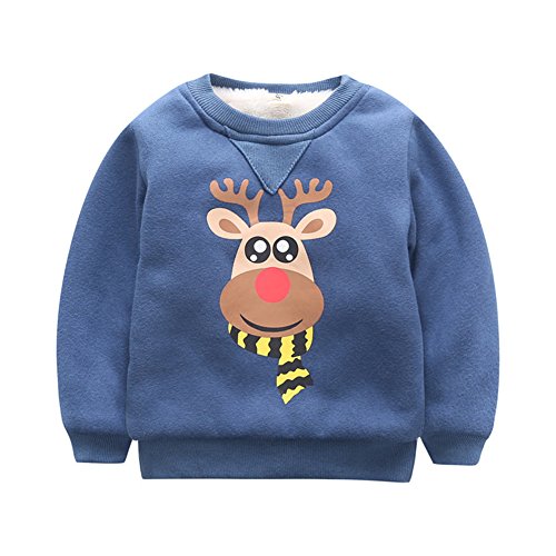 PANCY 子供服 秋冬 長袖 トレーナー 厚手 裏起毛 男の子 女の子 可愛い トナカイ プリント(120cm,ダークブルー)