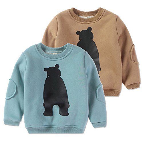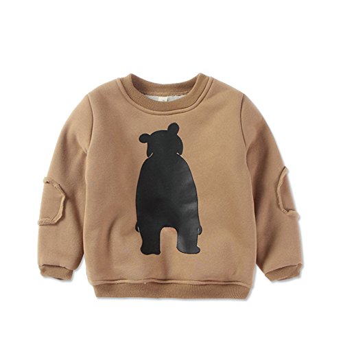 PANCY 子供服 秋冬 長袖 トレーナー 裏起毛 丸い襟 男の子 女の子 可愛い くま プリント(110cm,ブラウン)