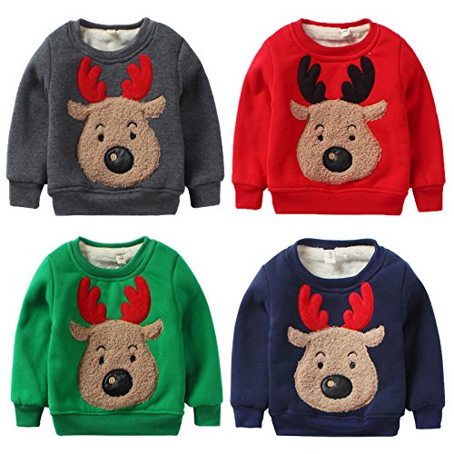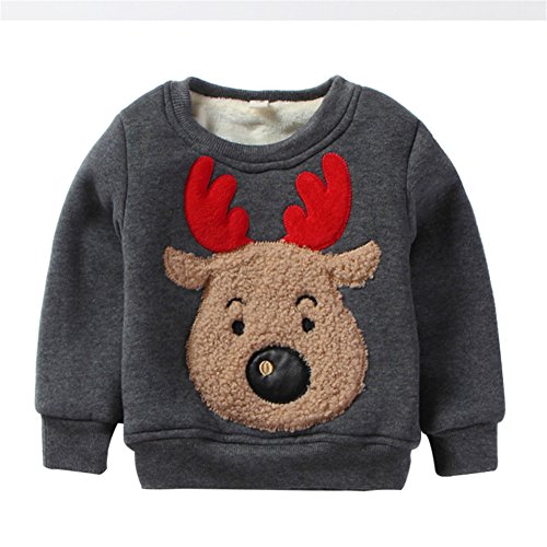 PANCY 子供服 秋冬 長袖 トレーナー 裏起毛 丸い襟 男の子 女の子 可愛い トナカイ アップリケ(120cm,グレー)