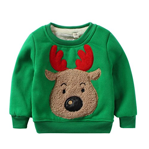 PANCY 子供服 秋冬 長袖 トレーナー 裏起毛 丸い襟 男の子 女の子 可愛い トナカイ アップリケ(110cm,グリーン)