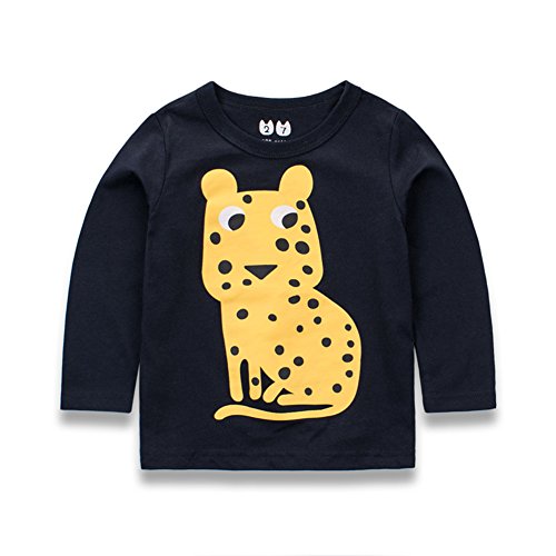PANCY 子供服 春秋 長袖 Tシャツ キッズ トレーナー 丸い襟 男の子 女の子 可愛い 動物柄 くま きつね うま(90cm,ネイビー)