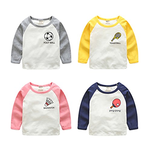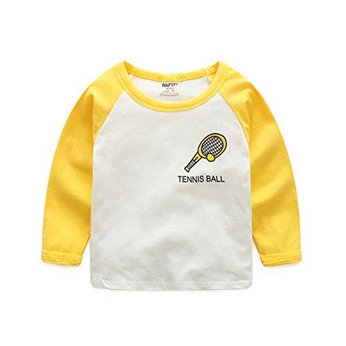 PANCY 子供服 春秋 長袖 Tシャツ キッズ トレーナー 丸い襟 男の子 女の子 かっこいい スポーツ プリント ホワイト(イエロー,130cm)