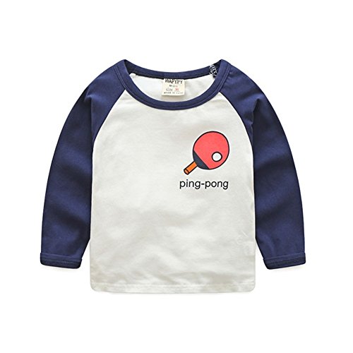 PANCY 子供服 春秋 長袖 Tシャツ キッズ トレーナー 丸い襟 男の子 女の子 かっこいい スポーツ プリント ホワイト(ネイビー,130cm)