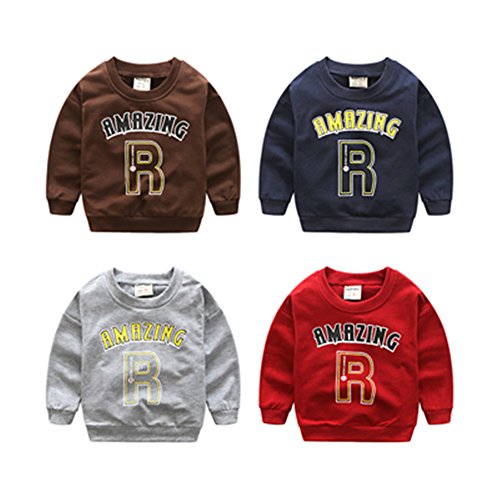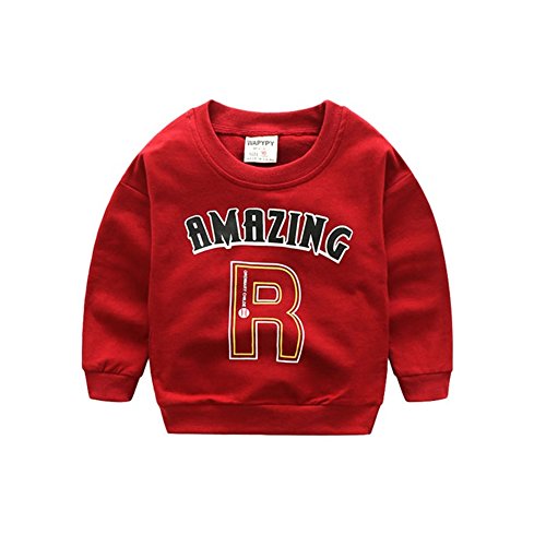 PANCY 子供服 春秋 長袖 Tシャツ キッズ トレーナー 丸い襟 男の子 女の子 かっこいい 英文字 プリント(レッド,90cm)