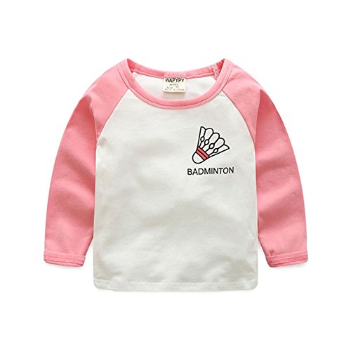 PANCY 子供服 春秋 長袖 Tシャツ キッズ トレーナー 丸い襟 男の子 女の子 かっこいい スポーツ プリント ホワイト(ピンク,100cm)