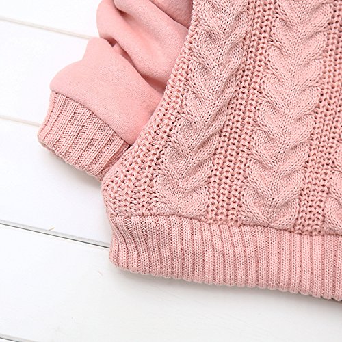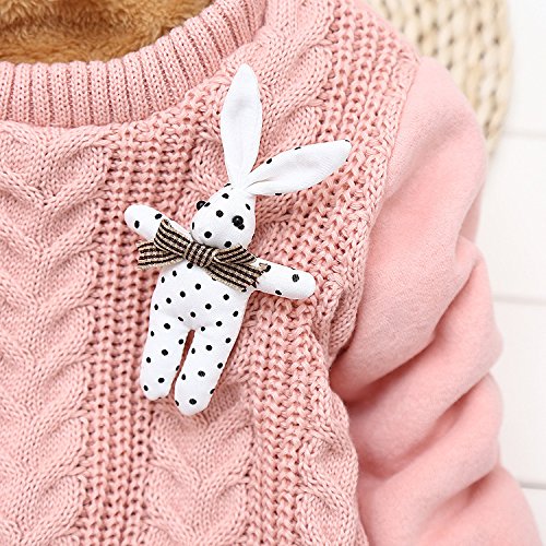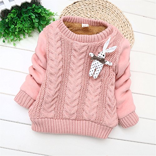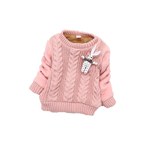 PANCY 子供服 秋冬 上質 防寒 長袖セーター ケーブル編み ニット 丸首 厚手 かわいい 裏起毛 うさぎ ぬいぐるみ付き 女の子 2色(S,ピンク)
