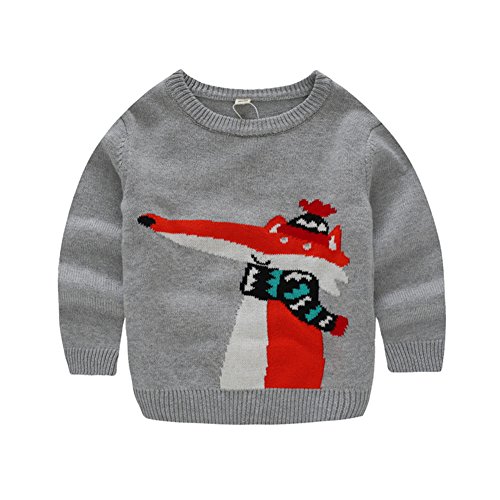 PANCY 子供服 秋冬 長袖 セーター ニット 丸首 かわいい 男の子 女の子 きつね(105cm,グレー)