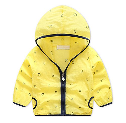 PANCY 子供服 春夏 日焼け防止 パーカー 女の子 男の子 キッズ 薄手 長袖 空調対策 ファッション 可愛い 笑顔柄 プリント 2色(イエロー/100#)