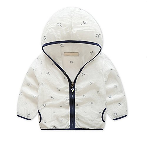 PANCY 子供服 春夏 日焼け防止 パーカー 女の子 男の子 キッズ 薄手 長袖 空調対策 ファッション 可愛い 笑顔柄 プリント 2色(白/130#)