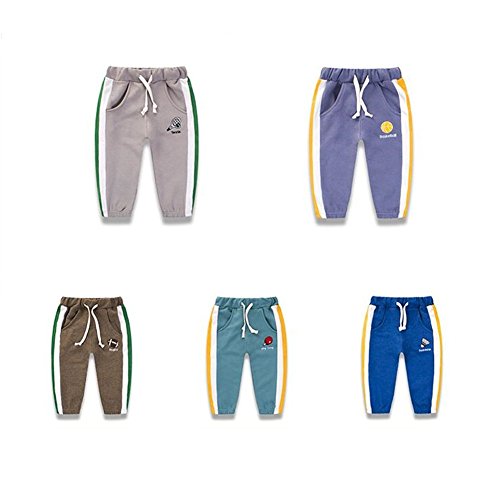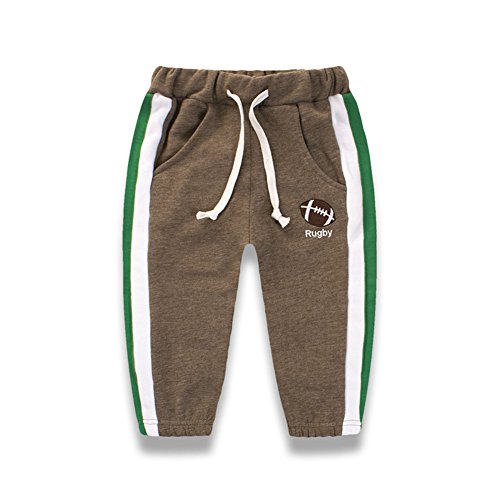 PANCY 子供服 春秋 長ズボン キッズ 縄付き ロングパンツ 男の子 女の子 シンプル スポーツウェア 刺繍(ブラウン,120cm)