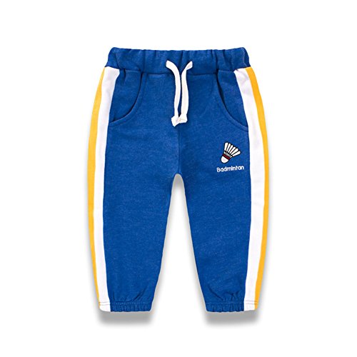 PANCY 子供服 春秋 長ズボン キッズ 縄付き ロングパンツ 男の子 女の子 シンプル スポーツウェア 刺繍(ブルー,120cm)