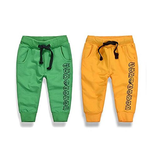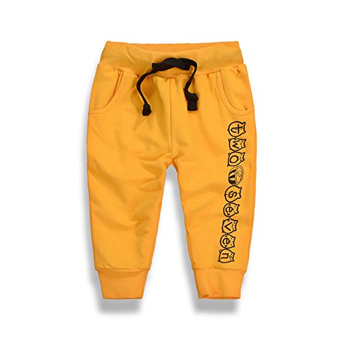 PANCY 子供服 春秋 長ズボン キッズ 縄付き ロングパンツ 男の子 女の子 シンプル 可愛い プリント(イエロー,110cm)