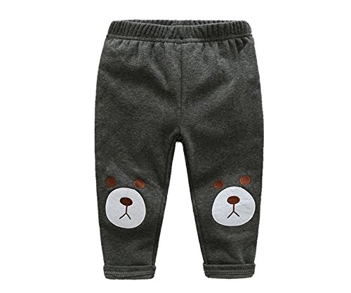 PANCY 子供服 上質 秋冬 長ズボン ロングパンツ シンプル くま アップリケ 男の子 女の子(90cm,ブラック)
