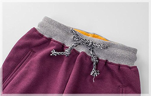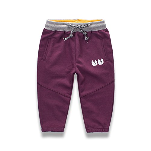 PANCY 子供服 春秋 長ズボン キッズ 縄付き ロングパンツ 男の子 女の子 シンプル 可愛い 刺繍 コントラストカラー(パープル,110cm)