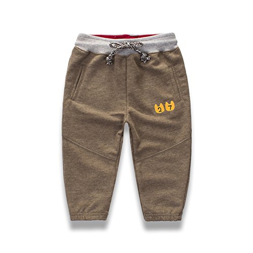 PANCY 子供服 春秋 長ズボン キッズ 縄付き ロングパンツ 男の子 女の子 シンプル 可愛い 刺繍 コントラストカラー(ライトブラウン,130cm)