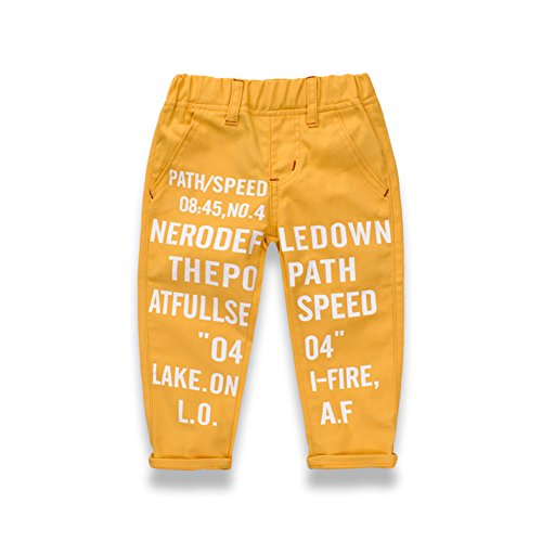 PANCY 子供服 春秋 長ズボン キッズ ロングパンツ 男の子 女の子 おしゃれ 英字柄 韓国風(イエロー,110cm)