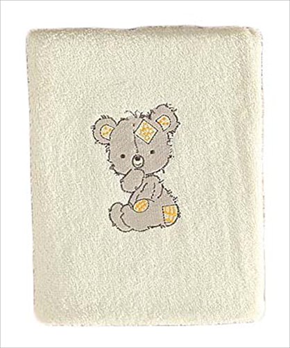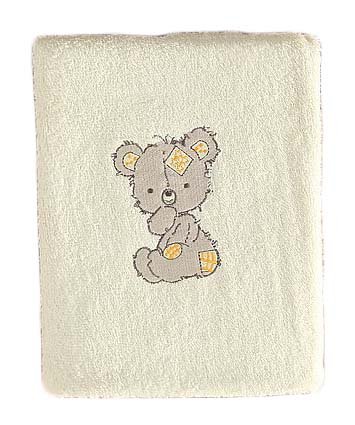 クリーム色のタオル生地に可愛いくまの刺繍がされてあります。