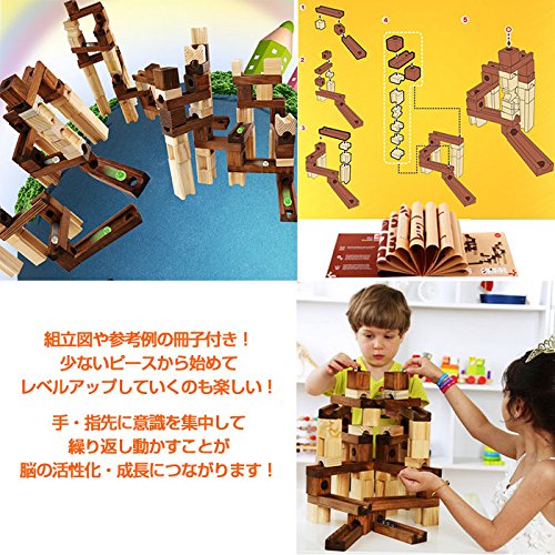 passion ウッドブロックスロープセット 積み木 ブロック おもちゃ 知育玩具 ビー玉 スロープ 手先 指 集中力 創造力 プレゼント 子ども 大人 ◇WOOD-BUILD (60ピース)