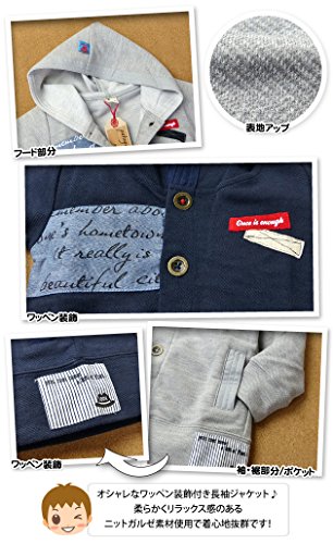 ベビー服 男の子 アウター ジャケット ワッペン装飾 ニットガルゼ素材 男児 (1.グレー/95cm)