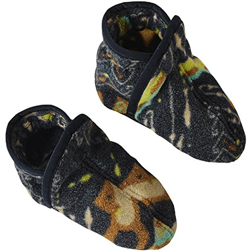 はいはいにも、よちよち歩きにも安心なブーティです。素材は温かくソフトで快適な8oz両面リサイクルポリエステルフリース。伸縮性を備えた足首は着脱が容易でしっかりとフィットします。スキッドレスジャージーを使用した2層構造の靴底はクッション効果があり、横滑りや転倒を防ぎます。