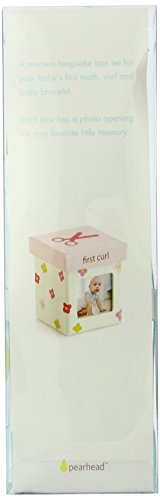 Three colorful little keepsake boxes;A keepsake for your baby's first curl, first tooth, and hospital i.d. Bracelet;Features three colorful fun patterns;The set is tied with a grosgrain ribbon for gift giving;The perfect gift for a new parent