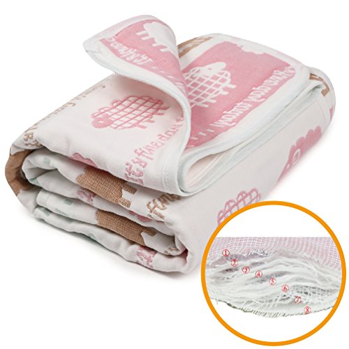 ペコリッペ 6重より柔らか 8重 ガーゼケット ベビーケット オーガニックコットン 出産祝いに (110×110, ひつじ柄ピンク)