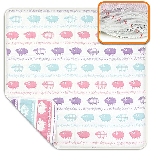 ペコリッペ 6重より柔らか 8重 ガーゼケット ベビーケット オーガニックコットン 出産祝いに (110×110, ひつじ柄パープル)