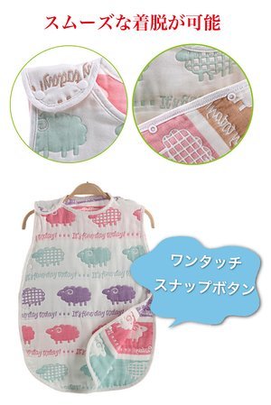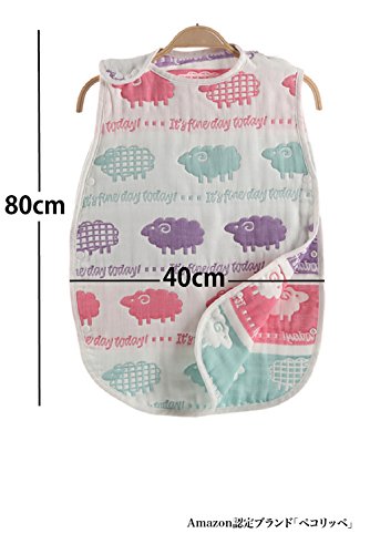 ペコリッペ 6重より柔らか 8重 ガーゼスリーパー 肌触り抜群 キッズサイズ80㎝ (2歳~7歳頃) (パープルひつじ)