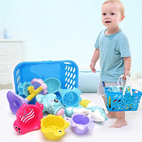 お風呂おもちゃ 可愛い動物 9件セット 水中めがね 水遊び バストイ ウォータースプレーおもちゃ 海 ビーチのおもちゃ 収納バスケット付