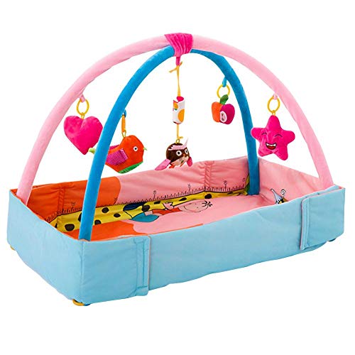 - 折りたため式で、小さなベッドを折れます。展開すると、マットとなれます。上には音楽出す吊りぬいぐるみがあって、赤ちゃんが手を伸ばさないならつかめません。赤ちゃんに手軽く運動させます。