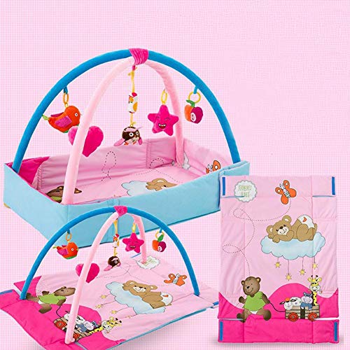 - 折りたため式で、小さなベッドを折れます。展開すると、マットとなれます。上には音楽出す吊りぬいぐるみがあって、赤ちゃんが手を伸ばさないならつかめません。赤ちゃんに手軽く運動させます。