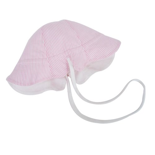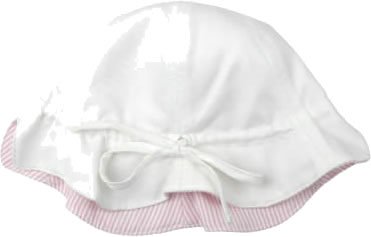 プチボヌール リバーシブルピケハットUV ホワイト×ピンクストライプ S