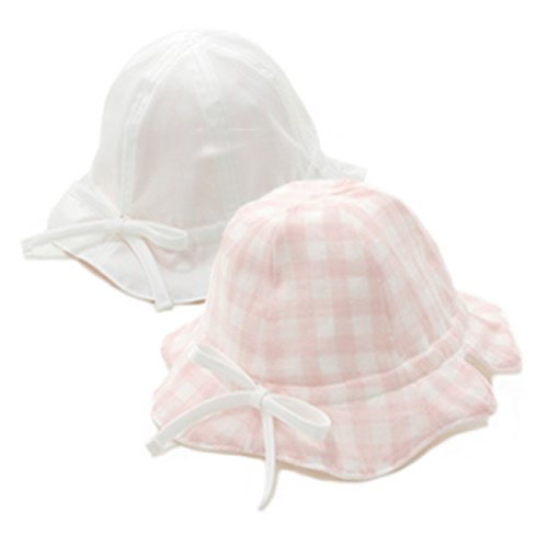 プチボヌール リバーシブルピケハットUV ホワイト×ピンクチェック S