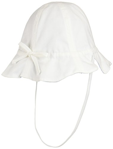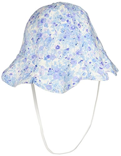 プチボヌール リバーシブルピケハットUV ホワイト×ブルーフラワー M