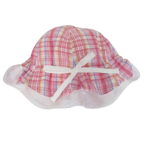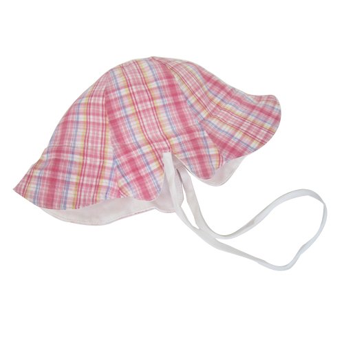 プチボヌール リバーシブルピケハットUV ホワイト×マドラスチェックピンク S