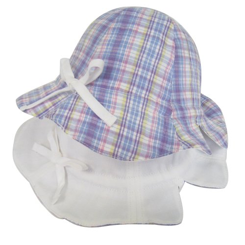 プチボヌール リバーシブルピケハットUV ホワイト×マドラスチェックブルー M
