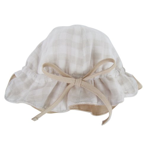 プチボヌール リバーシブルピケハットUV ベージュ×ベージュチェック M