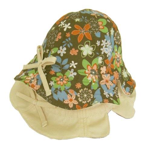 petit bonheur プチボヌール リバーシブルピケハットUV ベージュ×ブラウンフラワー S