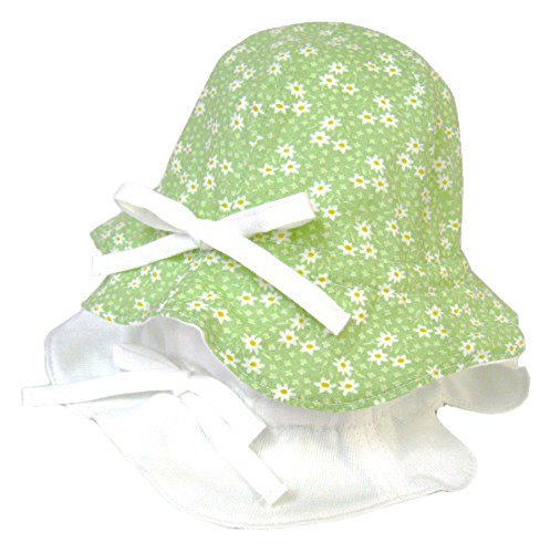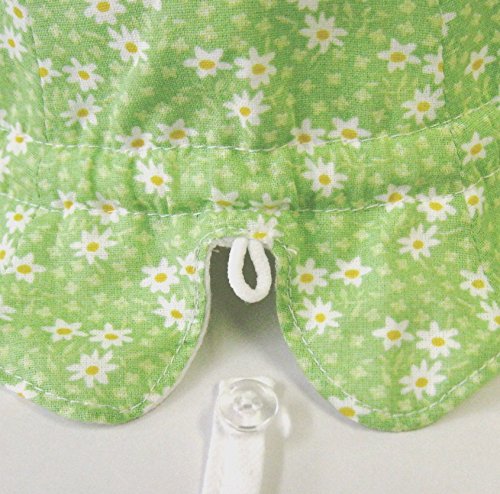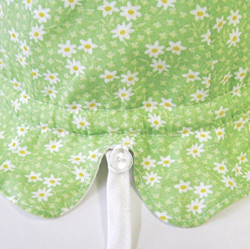 プチボヌール ひもがはずせるリバーシブルピケハットUV オフホワイト×デイジーグリーン
