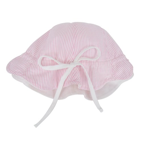 サイズ調節ができるリバーシブル帽子。UVカット加工。あご紐が取り外せます。