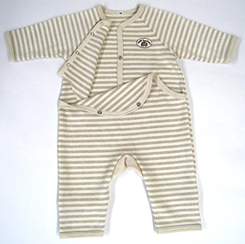 petit bonheur プチボヌール オーガニックバンブー ボーダーラップロンパース 長袖 60cm