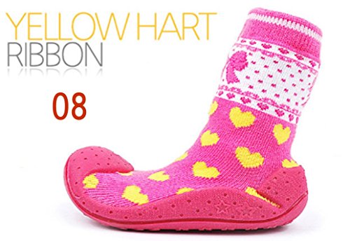 ComoBaby (コモベビー) ファーストシューズ 初めての 赤ちゃん靴 ソックスシューズ ベビーシューズ たっち あんよ 練習 11.5cm / 12.5cm 全10カラー (a. 11.5cm, 08. イエローハートリボン) 08a
