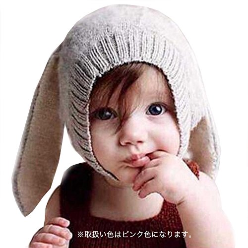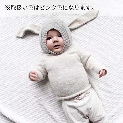 うさぎの耳付きのキッズ用ニットです。 色は人気のピンク色です。