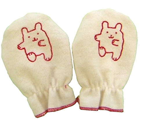 ベビー用品だからこそ安心の素材を。 楽しくスキップしているうさぎやくまの刺繍入り。 つめで顔を傷つけないように保護したり、 寒さ対策にも役立ちます。