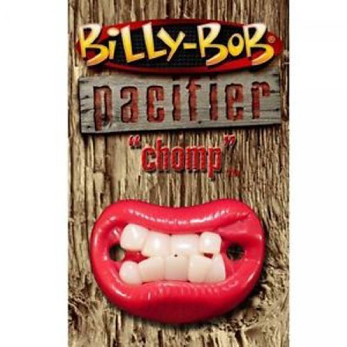 All Billy Bob Pacifiers have silicone nipples and the guards are made of ABS Material. All of our pacifiers have been tested and pass all U.S. Guidelines. Depending on the pacifier some have even passed European standards as well.;The name meaning CHOMP is a mouth full of teeth;These Billy Bob Pacifiers come with our standard silicone orthodontic NUK style nipple or soother;Let your baby get all of the attention at the playground with this funny pacifier;100% safe, B.P.A.free. Ages 3 months to 99 years