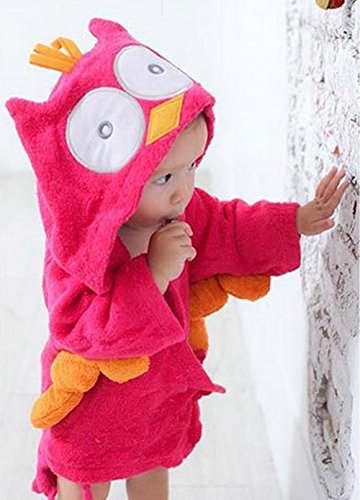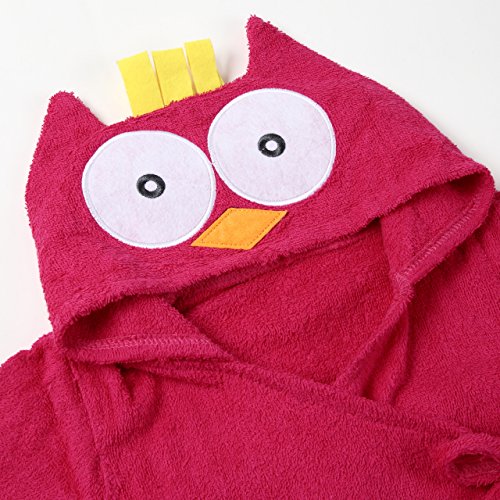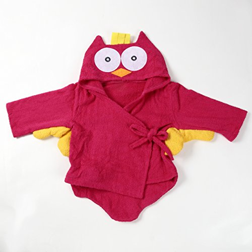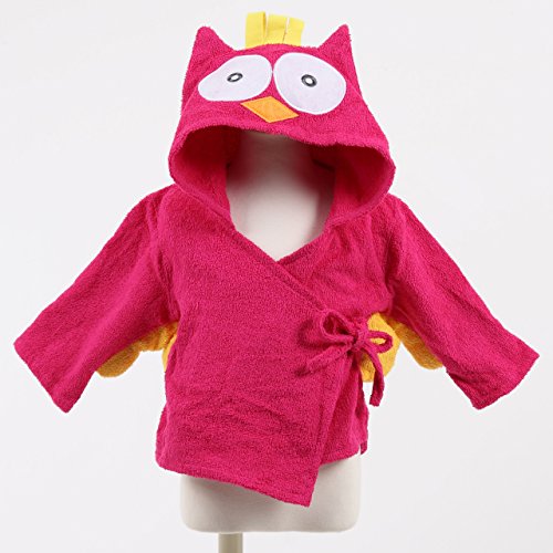 【ps.j】バスローブ ベビーバスローブ お包み アニマル 7種キャラ 出産祝い ギフトにもどうぞ! (フクロウ(赤))
