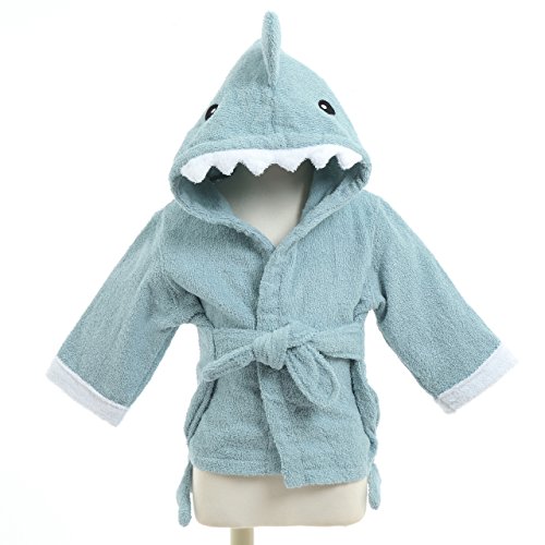 【ps.j】バスローブ ベビーバスローブ お包み アニマル 7種キャラ 出産祝い ギフトにもどうぞ! (サメ(ブルー))