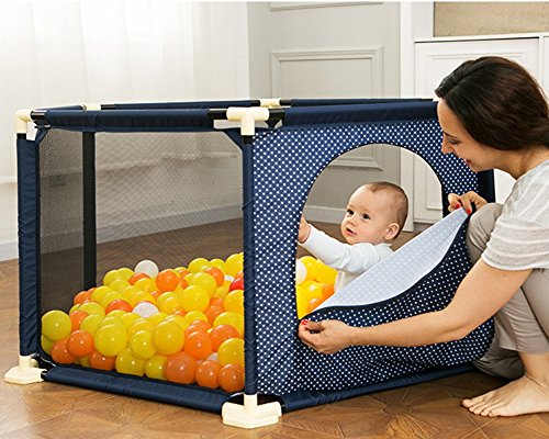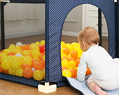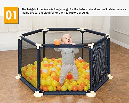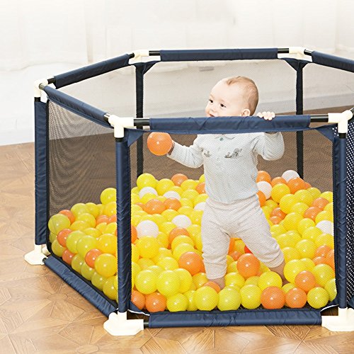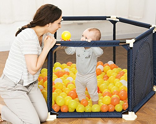 大型ポータブルベビーセーフティボール、幼児の子供たちの遊び場遊び屋内野外遊びペンゲームフェンス、ブルーファブリック、6パネル