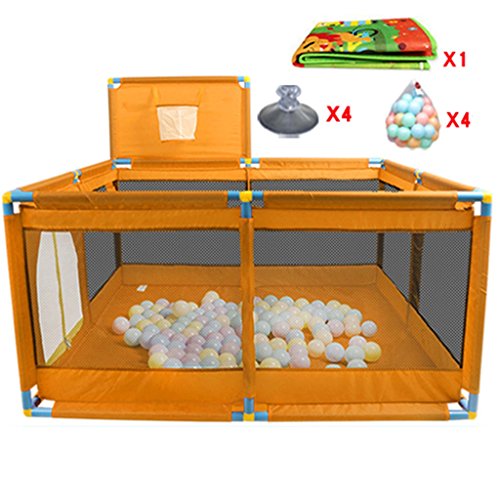 クッションとボール、オックスフォードクロスフェンス8パネルキッズアクティビティセンター、男の子の女の子屋外屋内、オレンジ
